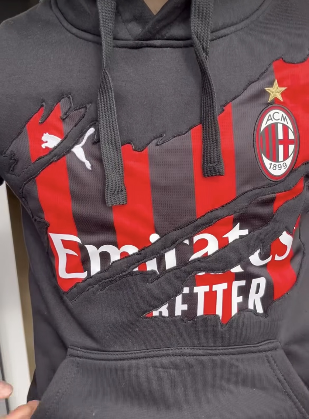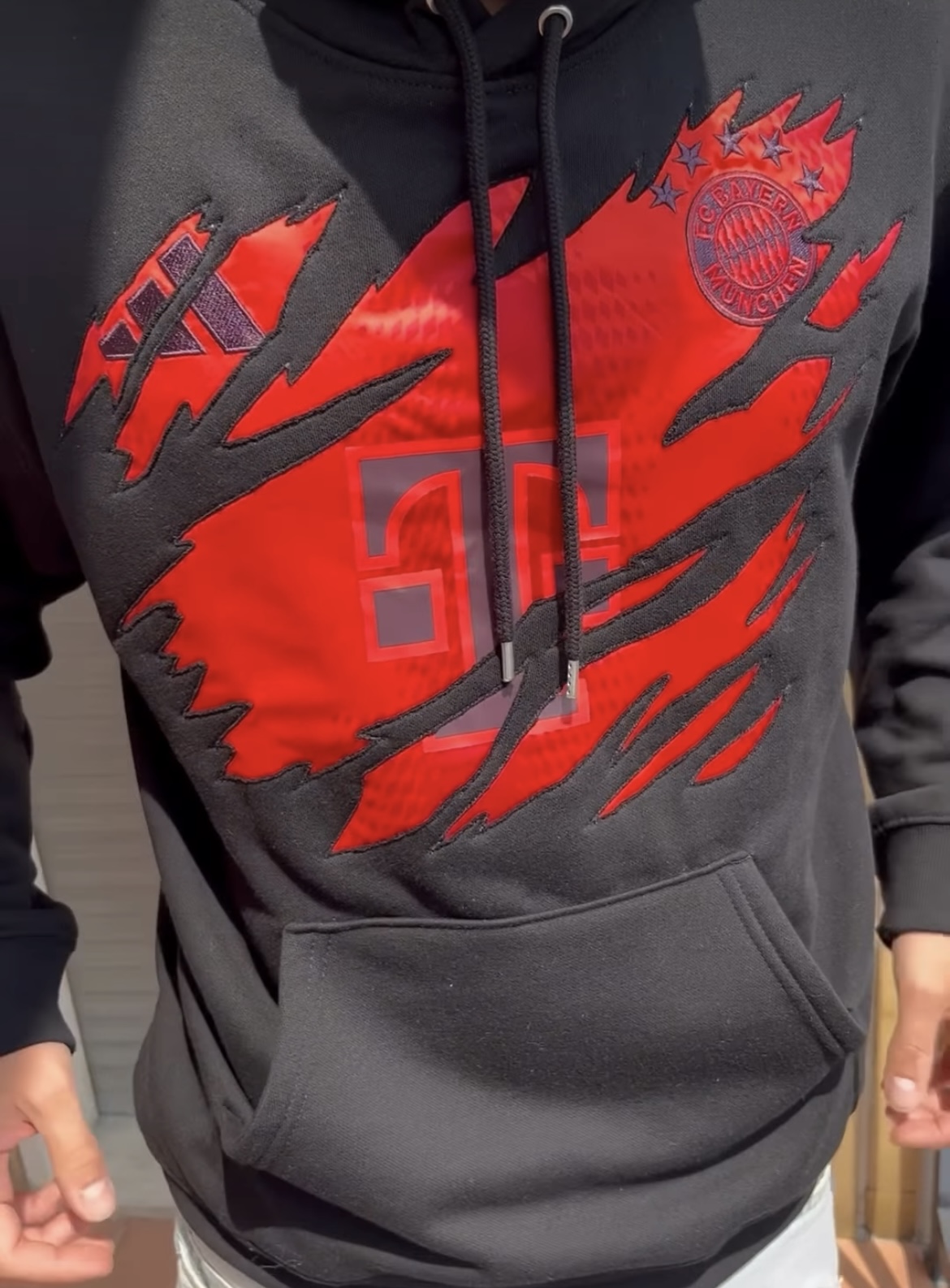 In FMLab we take your football shirt and transform it into a handmade, custom hoodie.