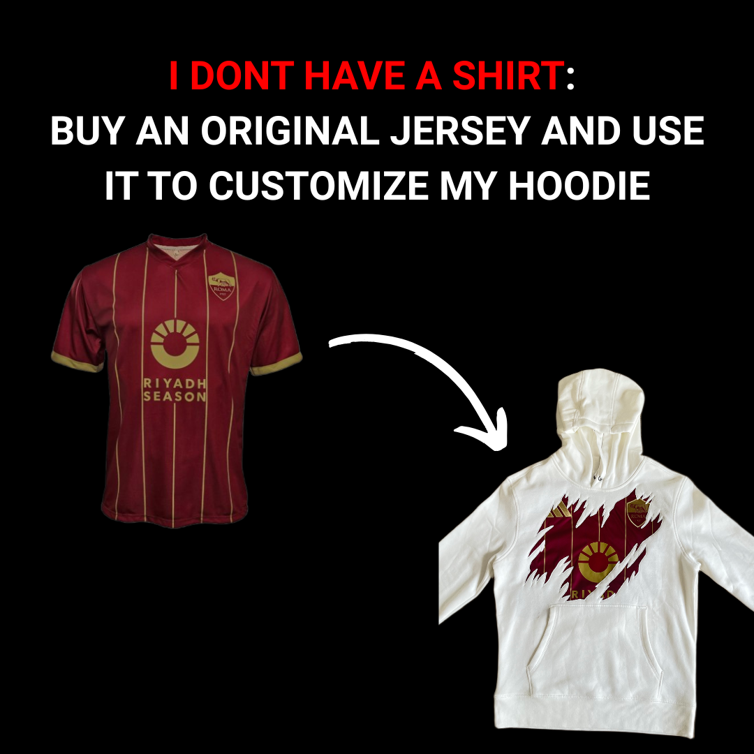 Add to cart now and let us create your exclusive custom hoodie starting from an original football shirt.